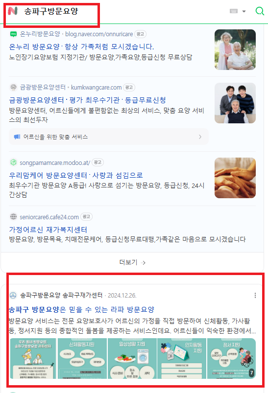 3) “송파구 방문요양” 검색 시 최상단 노출