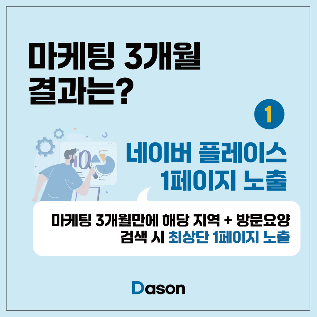 안녕하세요. 7개월 만에 지역 1등을 만드는 사회복지 기관 전문 다손 마케팅입니다.