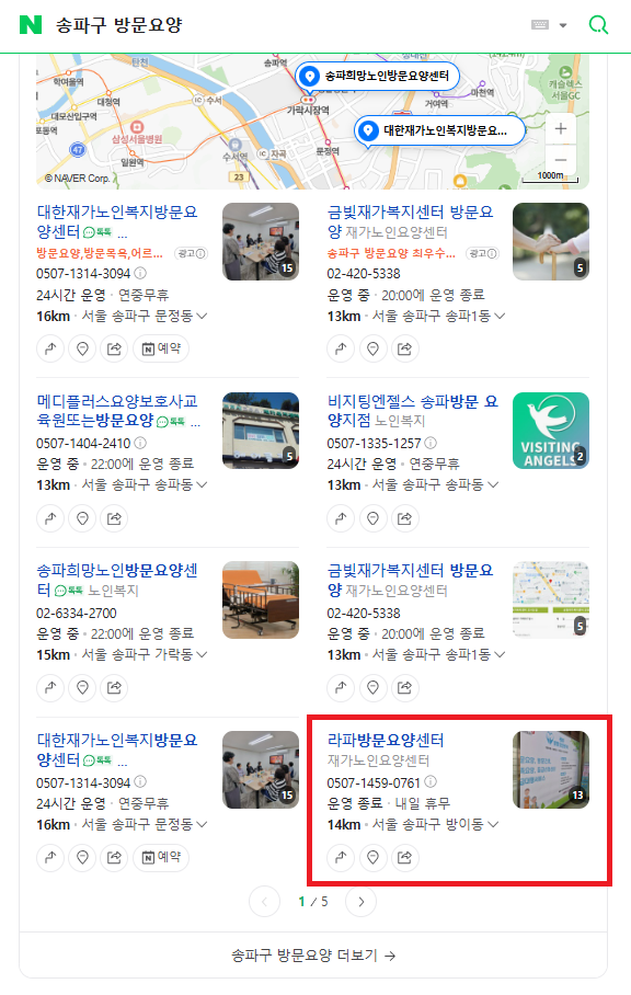 3) “송파구 방문요양” 검색 시 최상단 노출